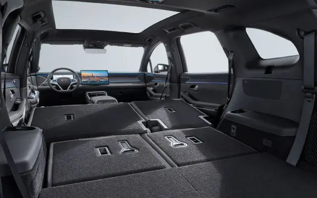 Faros LED delanteros, luces antiniebla traseras, luces ambientales de colores. Espejos retrovisores exteriores ajustables eléctricamente y con calefacción y descongelamiento.